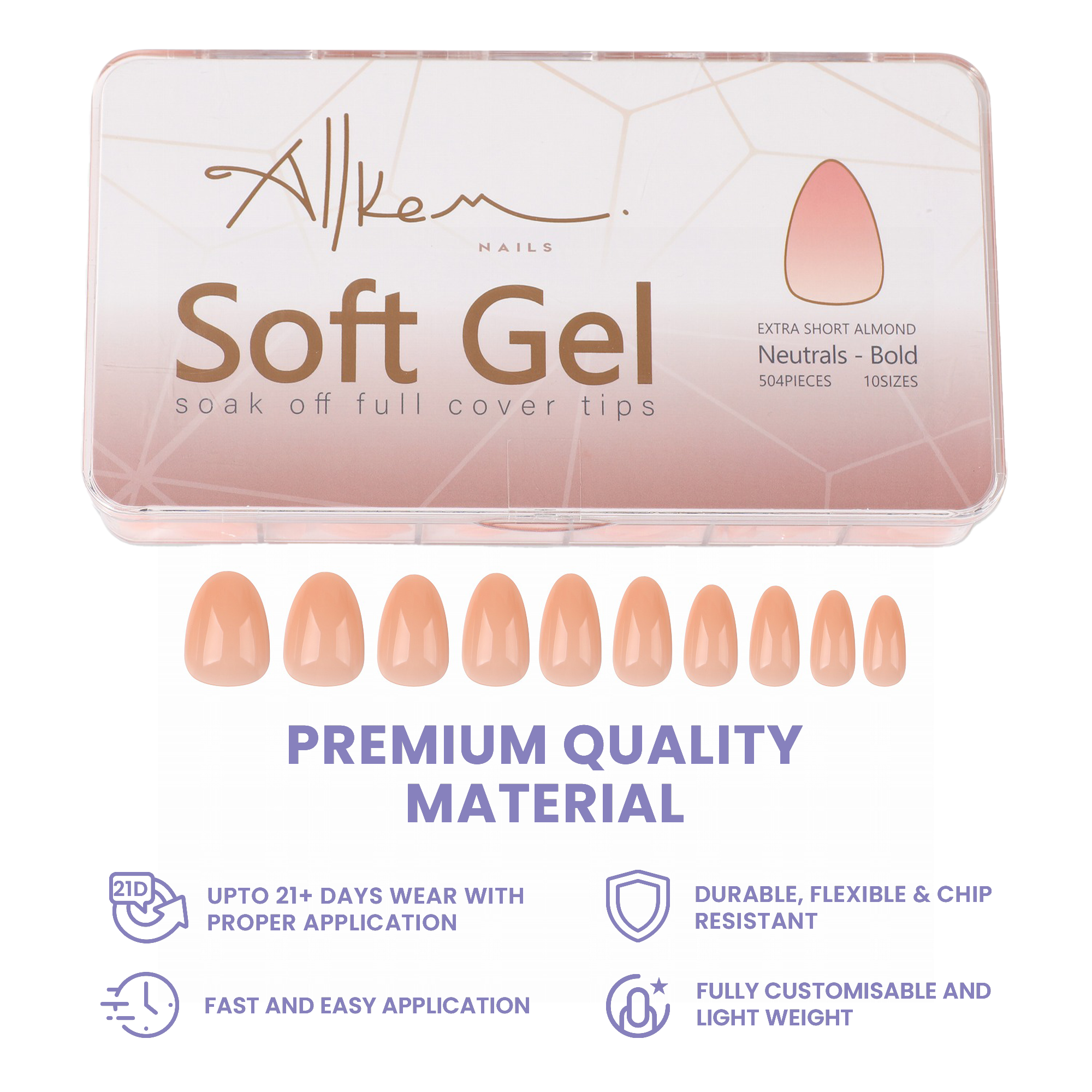 Allkem Extra Short Almond 504 Pcs | Nude Tone Soft Gel Nails