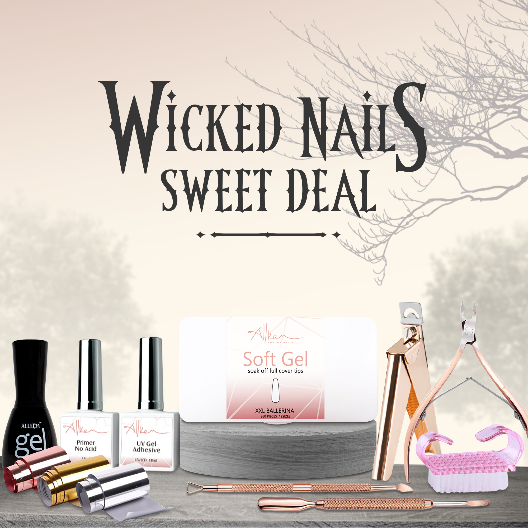 Get ready to slay this spooky season with the Allkem Wicked Nails Stiletto Bundle Kit — your ultimate all-in-one nail kit for hauntingly flawless nails.