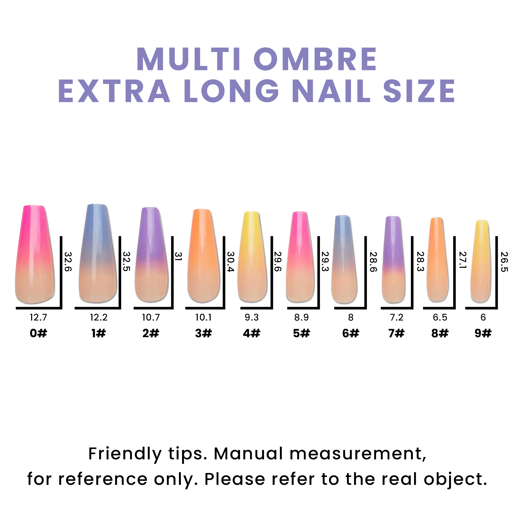 Multi Ombre Extra Long Ballerina Press On Nails – AllKem Nails