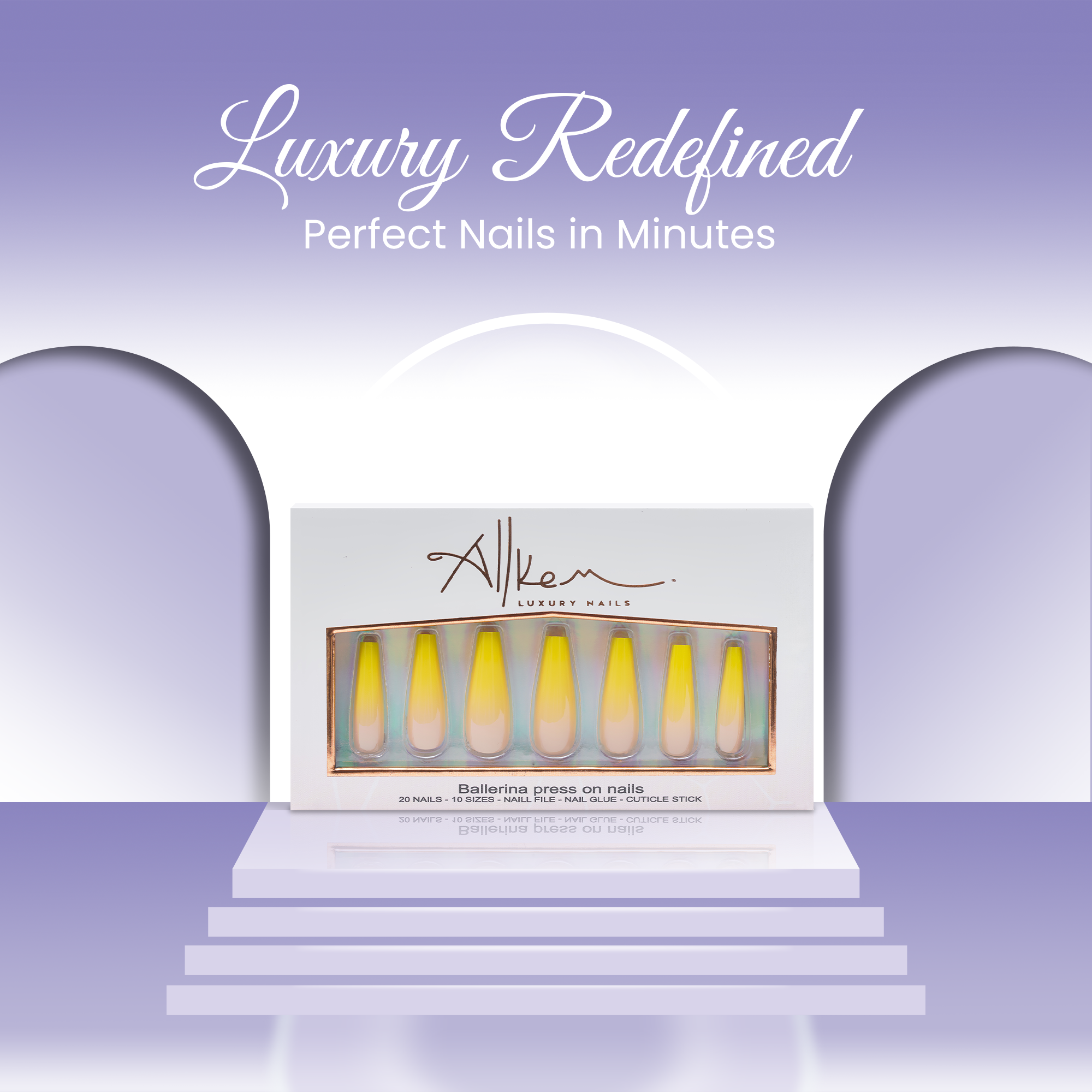• Allkem Nails are high quality, durable and long-wearing, meaning you can wear them weeks straight or a few days at a time—you decide.